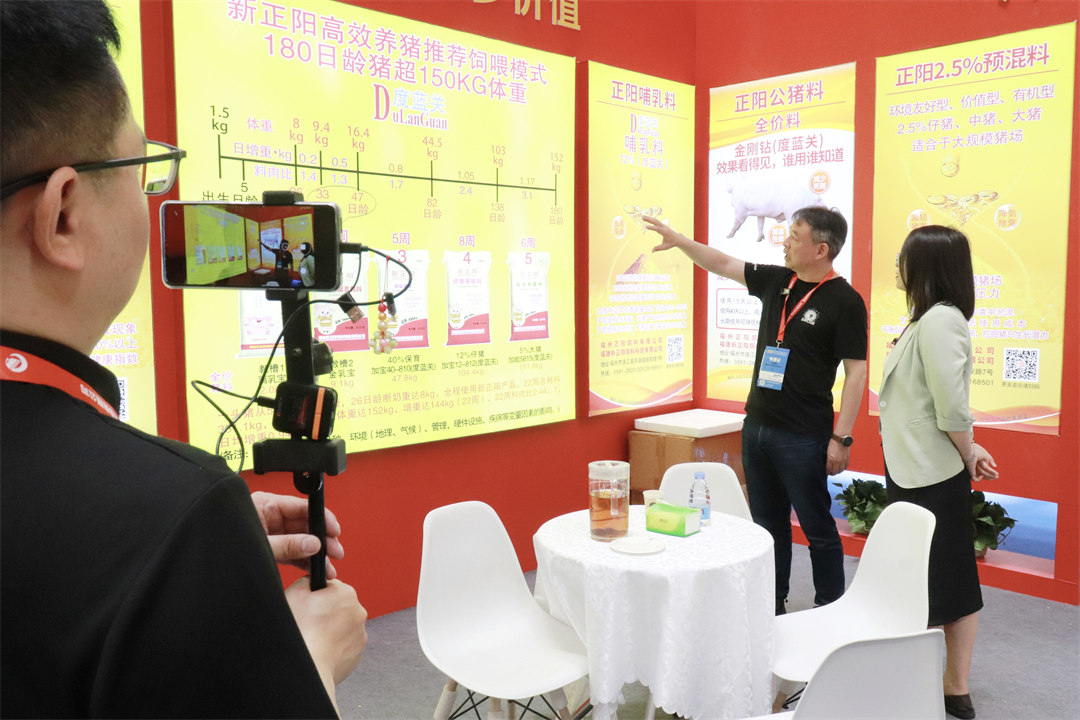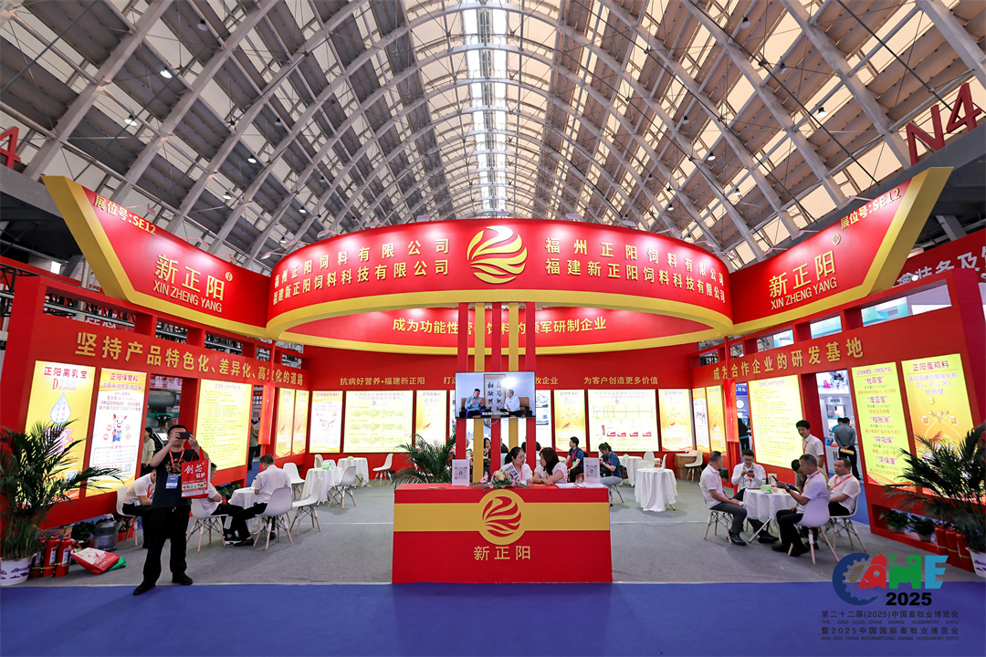 此次畜博会展馆启用十二大展馆,四万平米的十字连廊展区,两万平的大棚和室外展场,展览总面积超18万平米,8200 个展位,逾1500余家企业参展。5月19日单日接待观众16.3万人次,20日单日接待观众9.2万人次,畜牧人齐聚青岛,共赴这场畜牧行业盛会!新正阳亮相2025畜博会,展示抗病营养新成果。
