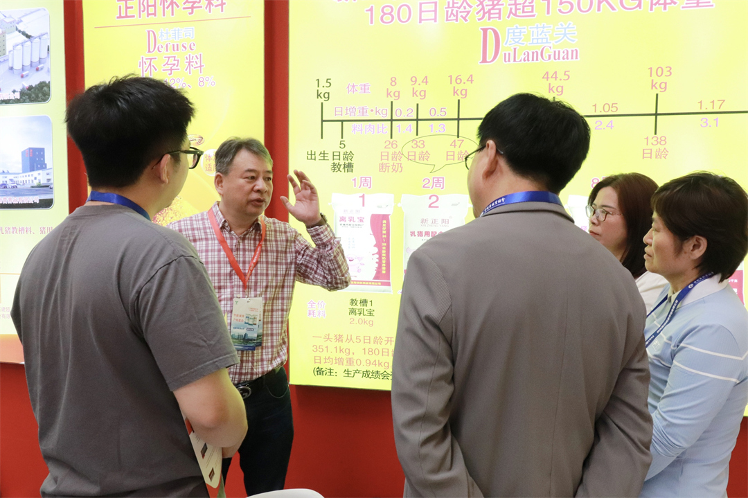 新正阳公司“杜菲宝”、“度蓝宝”、“梭胀消”等抗病营养产品,备受行业专业人士及养殖企业的广泛关注,各方纷至沓来并展开深度交流。